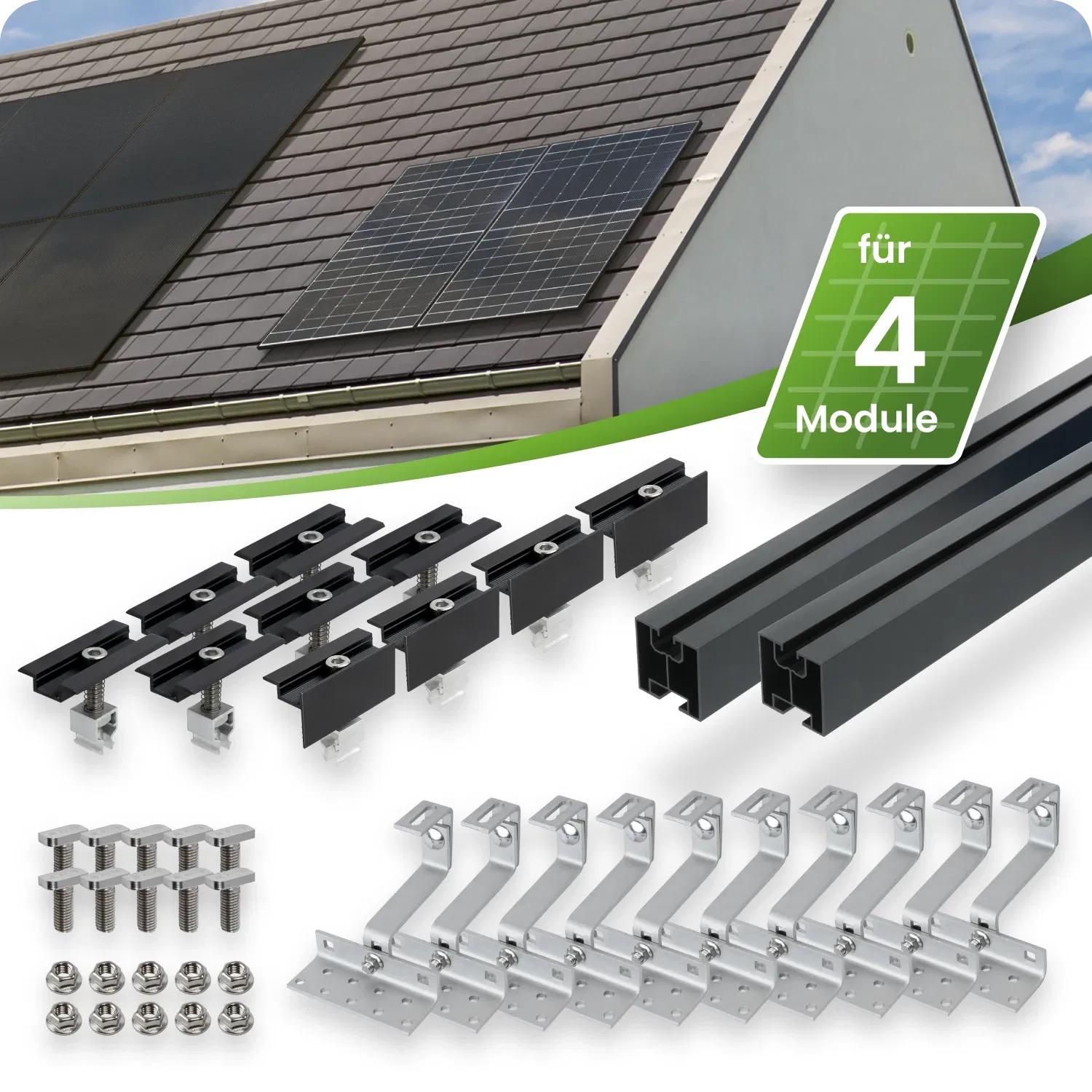 Este kit es perfecto para instalar 1-4 paneles solares en tejados inclinados.