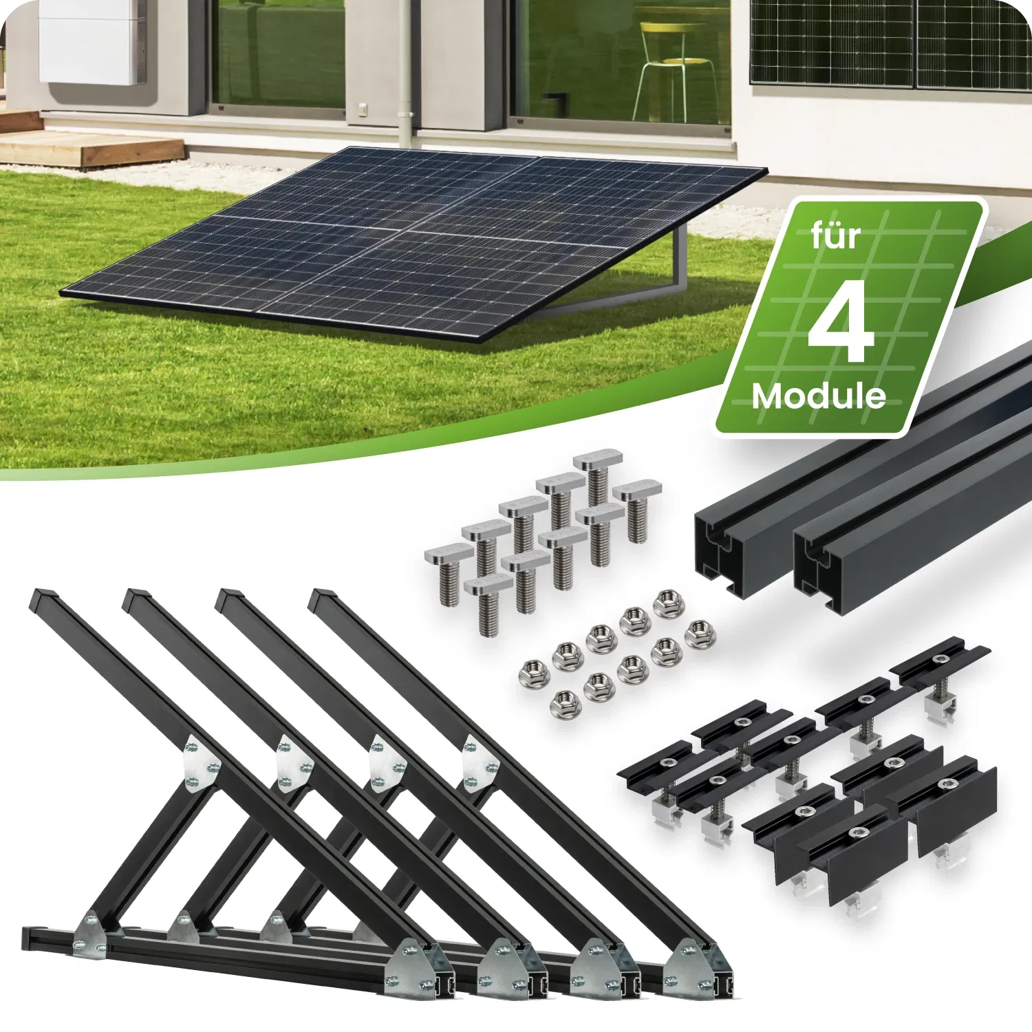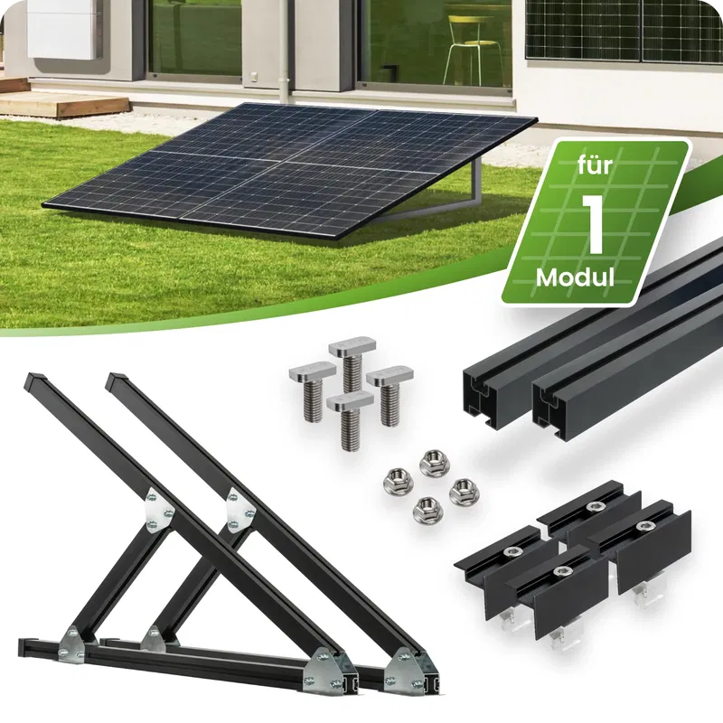 Este kit es ideal para montar 1 módulo solar en un tejado plano o directamente en la pared.