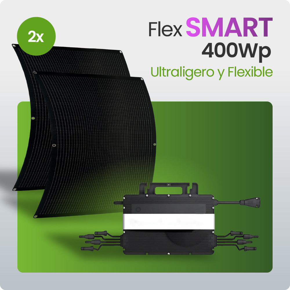 Kit Solar "FLEX-SMART 400W" - 2 módulos solares flexibles & ultraligeros de 200W + microinversor & fijación para el balcón