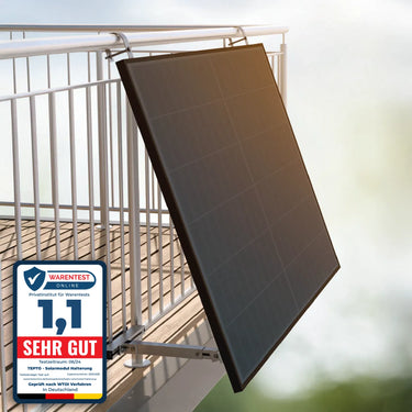 Nuestro kit de montaje para balcón ofrece la solución ideal para fijar tu módulo solar de forma segura y cómoda en la barandilla del balcón.
